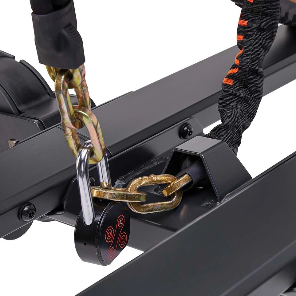 - Integrated SKS (Same Key System) locks included to secure bikes to rack and rack to receiver